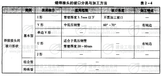 熔焊接頭與坡口分類與加工(表2-4)。