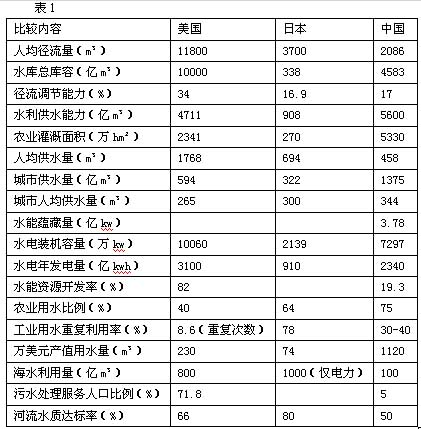 為了解我國水利建設(shè)發(fā)展的水平,我們選擇一些重要指標(biāo)與發(fā)達(dá)國家進(jìn)行比較(表1),我們可以得到以下一些認(rèn)識: