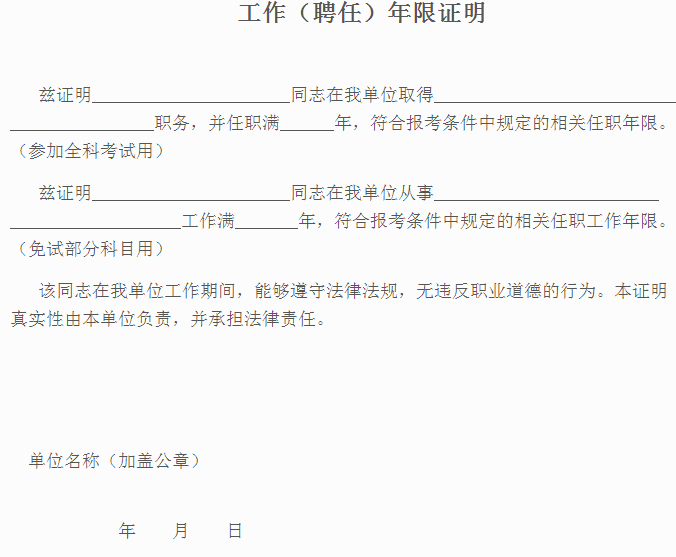 (6)根據(jù)報(bào)考條件所須提供的相應(yīng)業(yè)務(wù)工作(聘任)年限證明1份(加蓋單位公章,模板見(jiàn)附件2)。若對(duì)報(bào)考人員提供的工作(聘任)年限證明有質(zhì)疑,審核人員將根據(jù)報(bào)考者的身份證號(hào)碼,查詢其與報(bào)名單位一致的一年以上基本養(yǎng)老保險(xiǎn)參保相關(guān)信息;