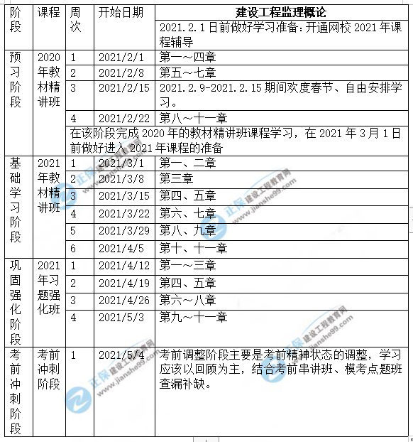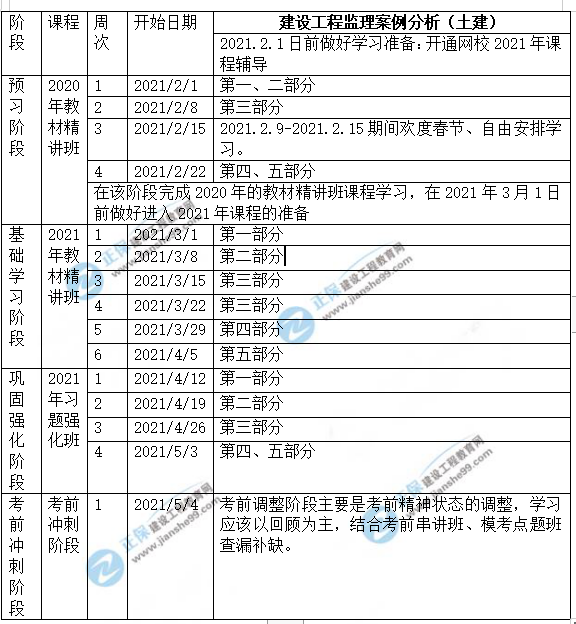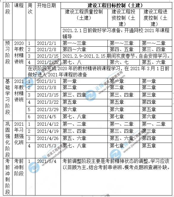 2021年監(jiān)理土建控制預(yù)習(xí)計(jì)劃表(2月1日-考試)