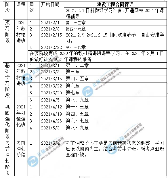 1、整體進(jìn)度說明:本計(jì)劃表從2021年2月1日開始執(zhí)行,計(jì)劃于2021年5月14日結(jié)束;其中:預(yù)習(xí)階段安排4周,基礎(chǔ)學(xué)習(xí)階段安排6周,鞏固強(qiáng)化階段安排4周,5月為考前沖刺階段。學(xué)員可根據(jù)本表的提示,結(jié)合自己的工作、學(xué)習(xí)情況進(jìn)行細(xì)化,并按網(wǎng)校要求完成聽課、做題的學(xué)習(xí)任務(wù),基本可滿足考試需要。