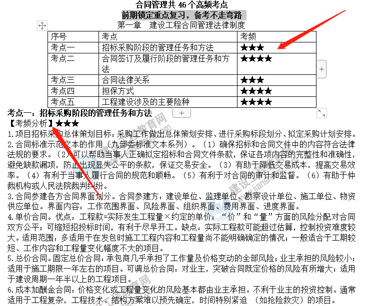 資料整體分為重要考點(diǎn)及考頻,考點(diǎn)不用多說就是要重點(diǎn)看的內(nèi)容,考頻代表這些知識(shí)點(diǎn)的重要程度,星號(hào)越多越重點(diǎn)。
