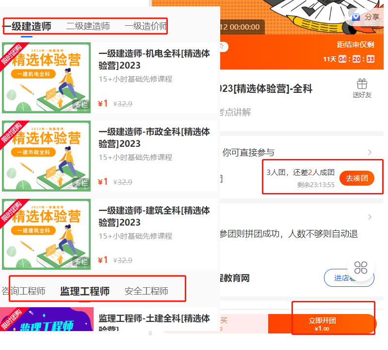 1、選擇想要拼團(tuán)的輔導(dǎo),可以選擇和別人拼團(tuán)也可以自己立即開(kāi)團(tuán),開(kāi)團(tuán)后,填寫開(kāi)課信息,點(diǎn)擊付款,可分享給同樣需要的小伙伴,3人成團(tuán)后即購(gòu)買成功。