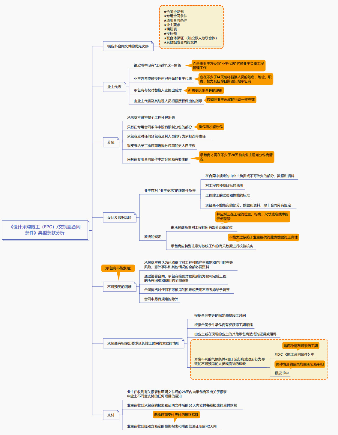 《設(shè)計采購施工(EPC)交鑰匙合同條件》典型條款分析思維導(dǎo)圖
