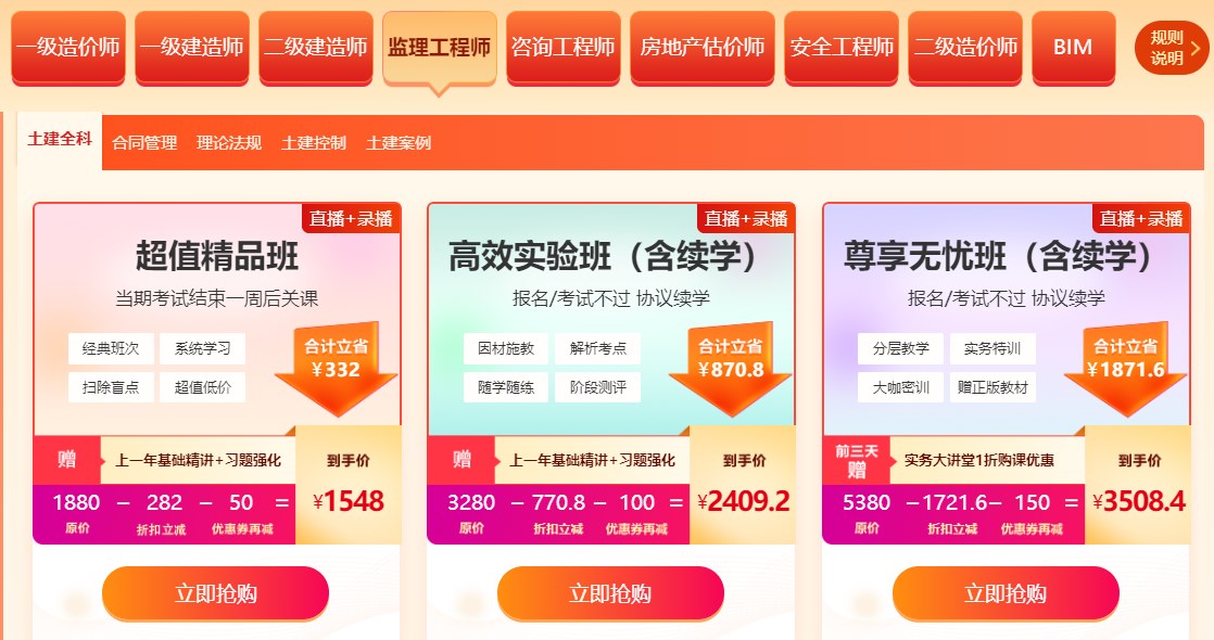 3.如果你是零基礎(chǔ)備考監(jiān)理,且自制力較差,推薦尊享無憂班點擊查看課程安排