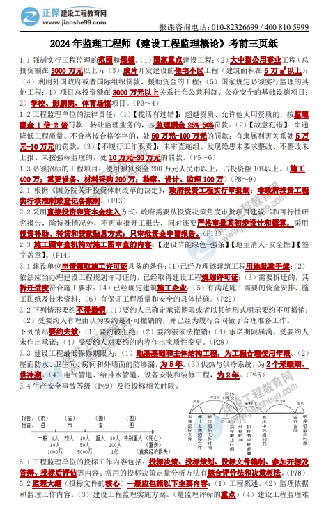 建設(shè)工程教育網(wǎng)的老師們精心整理了2024年監(jiān)理工程師理論和法規(guī)考前三頁紙,免費發(fā)給大家,臨時抱佛腳也是有用的,趕快來領(lǐng)取吧~