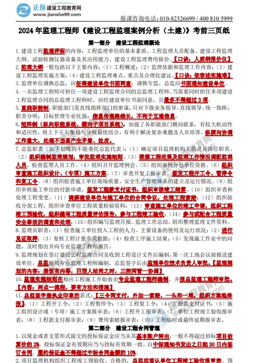 2024年監(jiān)理工程師土建案例考前三頁(yè)紙