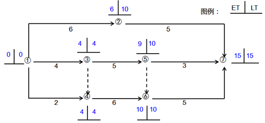 我們?cè)谟?jì)算雙代號(hào)網(wǎng)絡(luò)圖的時(shí)間參數(shù)時(shí),可以采取多種不同的方法。按節(jié)點(diǎn)計(jì)算法,就是先計(jì)算網(wǎng)絡(luò)計(jì)劃中各個(gè)節(jié)點(diǎn)的最早時(shí)間和最遲時(shí)間,然后再據(jù)此計(jì)算各項(xiàng)工作的時(shí)間參數(shù)和網(wǎng)絡(luò)計(jì)劃的計(jì)算工期。節(jié)點(diǎn)的最早時(shí)間是指以該節(jié)點(diǎn)為開(kāi)始節(jié)點(diǎn)的各項(xiàng)工作的最早開(kāi)始時(shí)間ETi;節(jié)點(diǎn)的最遲時(shí)間是指以該節(jié)點(diǎn)為完成節(jié)點(diǎn)的各項(xiàng)工作的最遲完成時(shí)間LTj。