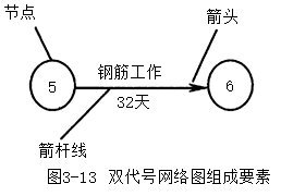 雙代號網(wǎng)絡(luò)圖由三個要素組成,即箭桿線、節(jié)點和線路。