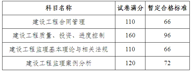 2015年度監(jiān)理工程師資格考試的成績已于2015年7月27日公布,但尚未收到國家下發(fā)的合格標準分數線。按照人力資源和社會保障部人事考試中心《關于做好資格考試報名初審考后復核工作的通知》(人考中心函〔2014〕45號),考后按照各科目試卷總分的60%確定暫定合格標準分數線進行考后復核工作。