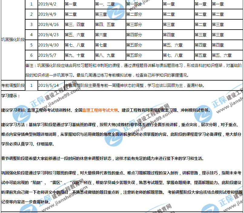 2019年監(jiān)理工程師考試備考學(xué)習(xí)計(jì)劃表(1-5月)