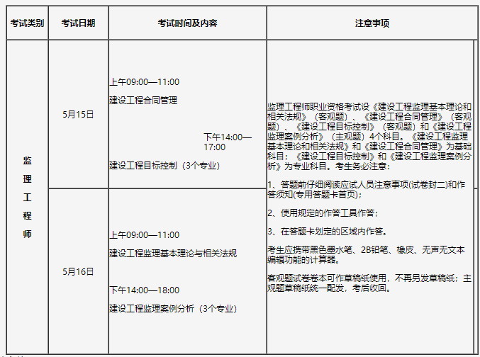 根據(jù)《人力資源社會保障部辦公廳關(guān)于2021年度專業(yè)技術(shù)人員職業(yè)資格考試計劃及有關(guān)事項的通知》(人社廳發(fā)〔2021〕4號)和《人力資源社會保障部人事考試中心關(guān)于2021年度監(jiān)理工程師職業(yè)資格考試考務(wù)工作的通知》(人考中心函〔2021〕5號)文件精神,為做好我省2021年度監(jiān)理工程師職業(yè)資格考試考務(wù)工作,現(xiàn)將有關(guān)事項通知如下: