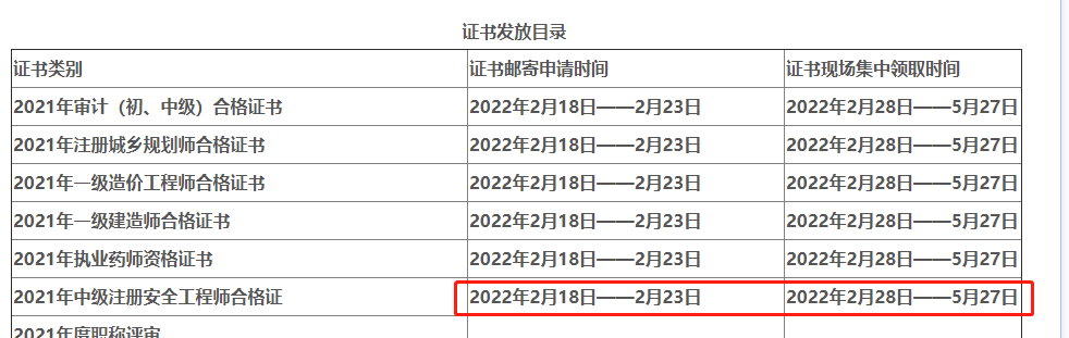 - · 安徽2025年中級注冊安全工程師證書領(lǐng)取時間匯總
