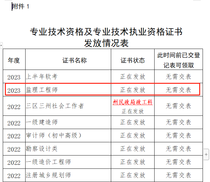 附件:1.專業(yè)技術(shù)資格及專業(yè)技術(shù)執(zhí)業(yè)資格證書發(fā)放情況表(2023.9.4更新).docx