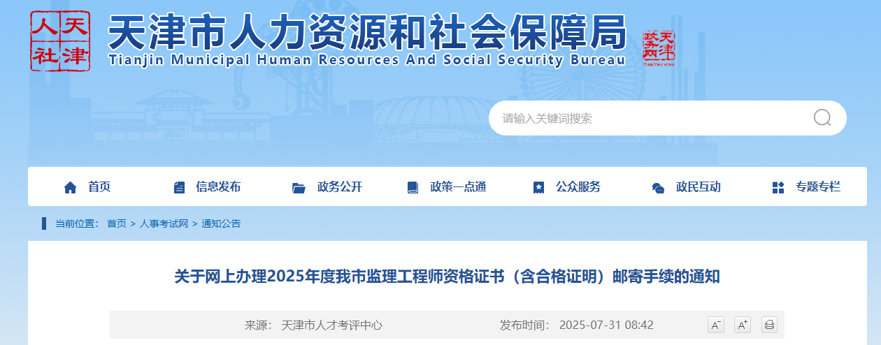8月13日通知:2025年度天津監(jiān)理工程師資格證書(含合格證明)的郵寄通知