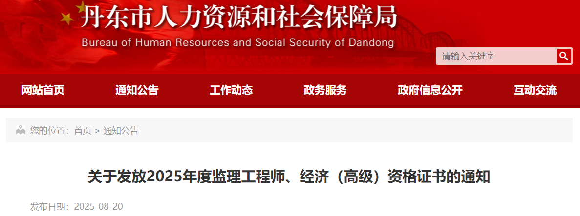 遼寧丹東市2025年度監(jiān)理工程師證書(shū)領(lǐng)取通知已發(fā)布,考生請(qǐng)于2025年8月20日起掃碼辦理郵寄,官方通知如下: