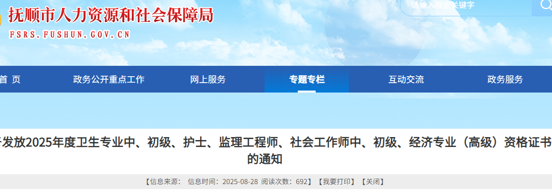 2025年度以下5項(xiàng)考試撫順考區(qū)證書(shū)將發(fā)放: