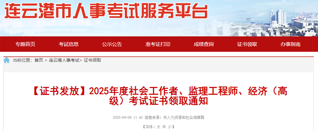 2025年度社會(huì)工作者、監(jiān)理工程師、經(jīng)濟(jì)(高級(jí))考試證書(shū)領(lǐng)取通知