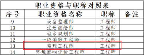 河南人社局發(fā)布《河南省人力資源社會(huì)保障廳關(guān)于工程技術(shù)人才職稱制度改革有關(guān)問題的通知》,文中提到,取得監(jiān)理工程師職業(yè)資格的人員,可直接聘任工程師。具體內(nèi)容如下: