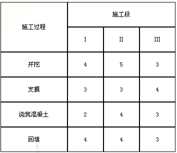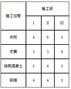某基礎(chǔ)工程包括開挖、支摸、澆筑混凝土及回填四個施工過程,分3個施工段組織流水施工,流水節(jié)拍見下表,則該基礎(chǔ)工程的流水施工工期為( )天。