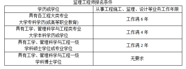監(jiān)理工程師報(bào)名條件:放寬工作年限要求