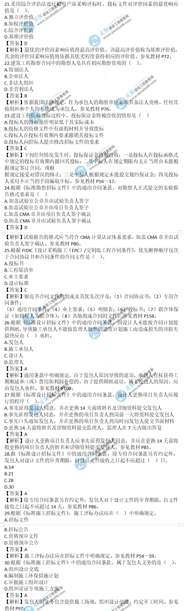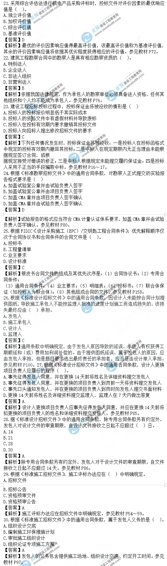 2021年監(jiān)理工程師合同管理試題及答案21-30題,建設(shè)工程教育網(wǎng)考后將會(huì)根據(jù)學(xué)員反饋進(jìn)行匯總,考試過(guò)后,廣大考生最關(guān)心的問(wèn)題莫過(guò)于2021年監(jiān)理工程師合同管理試題及答案21-30題了,網(wǎng)校會(huì)及時(shí)匯總2021年監(jiān)理工程師合同管理試題及答案分享給大家,并且做出答案解析,希望能為廣大監(jiān)理考生朋友帶來(lái)幫助。