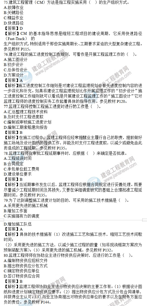 2021年監(jiān)理工程師土建控制試題及答案71-80題,建設(shè)工程教育網(wǎng)考后將會(huì)根據(jù)學(xué)員反饋進(jìn)行匯總,考試過(guò)后,廣大考生最關(guān)心的問(wèn)題莫過(guò)于2021年監(jiān)理工程師土建控制試題及答案71-80題了,網(wǎng)校會(huì)及時(shí)匯總2021年監(jiān)理工程師土建控制試題及答案分享給大家,并且做出答案解析,希望能為廣大監(jiān)理考生朋友帶來(lái)幫助。