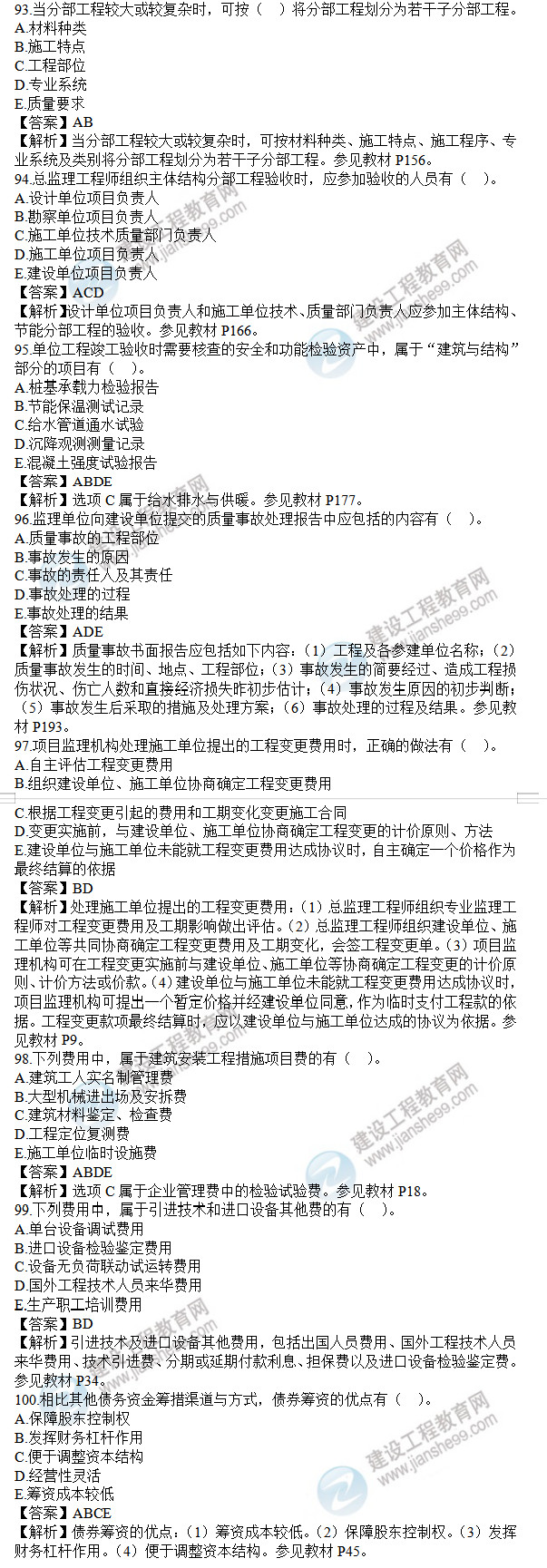 2021年監(jiān)理工程師土建控制試題及答案91-100題,建設(shè)工程教育網(wǎng)考后將會根據(jù)學(xué)員反饋進行匯總,考試過后,廣大考生最關(guān)心的問題莫過于2021年監(jiān)理工程師土建控制試題及答案91-100題了,網(wǎng)校會及時匯總2021年監(jiān)理工程師土建控制試題及答案分享給大家,并且做出答案解析,希望能為廣大監(jiān)理考生朋友帶來幫助。
