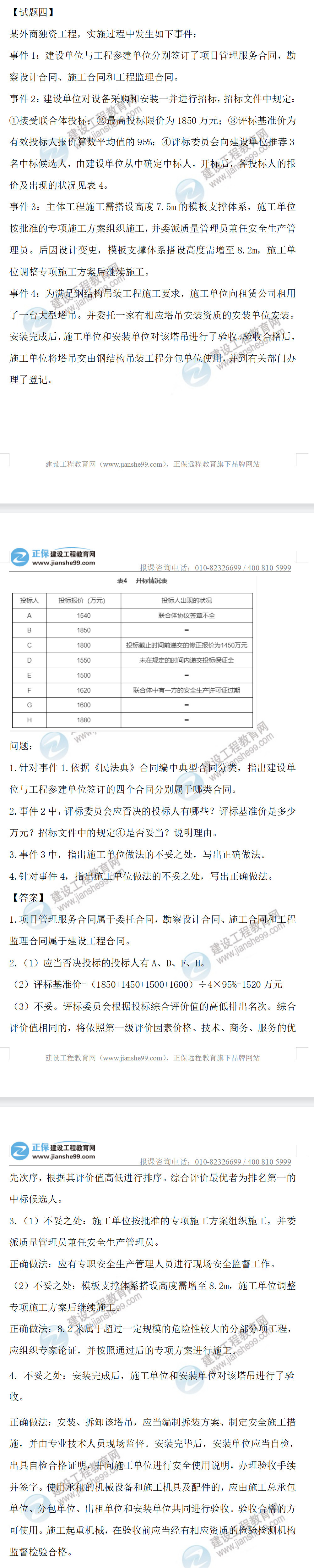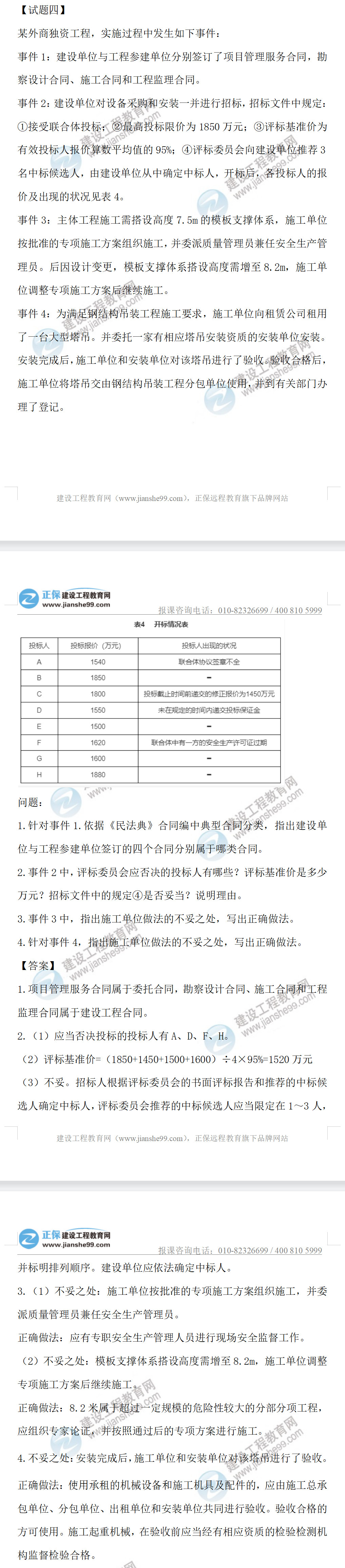 2022年監(jiān)理工程師土建案例考試答案第四題