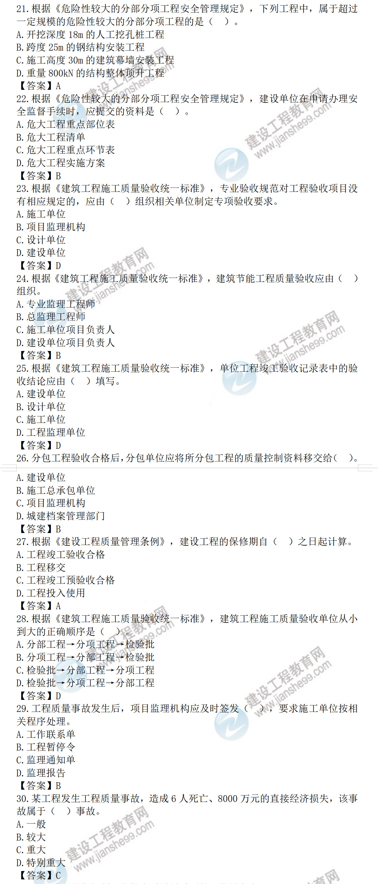 2022年監(jiān)理工程師目標(biāo)控制土建考試答案21-30題(補(bǔ)考)