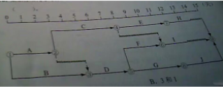 【解析】本題考查的是時(shí)標(biāo)網(wǎng)絡(luò)計(jì)劃中時(shí)間參數(shù)的判定。工作C的最早開(kāi)始時(shí)間可以直接由圖可得,為3天;工作C的總時(shí)差=min{1,3+2}=1天。參見(jiàn)《進(jìn)度控制》教材P62~63。