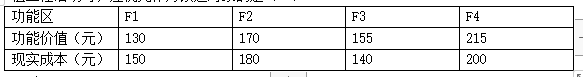 【解析】本題考查的是價(jià)值工程的應(yīng)用。以功能目標(biāo)成本為基準(zhǔn),通過與功能現(xiàn)實(shí)成本的比較,求出兩者的差值(改善期望值),然后選擇改善期望值大的功能作為價(jià)值工程活動的重點(diǎn)對象。F1:150-130=20(元),F(xiàn)2:180-170=10(元),F(xiàn)3:140-155=-15(元),F(xiàn)4:200-215=-15(元)。顯然選擇F1作為改進(jìn)對象。參見《投資控制》教材P104~105。