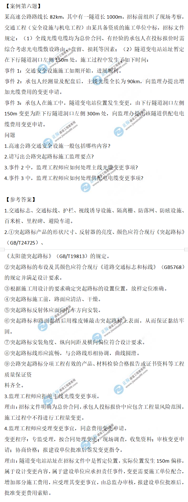 2021年監(jiān)理工程師交通案例試題及答案第六題