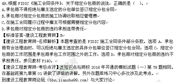 2016年監(jiān)理工程師《建設(shè)工程合同管理》答案及解析由老師整理而成,部分網(wǎng)站未經(jīng)許可擅自轉(zhuǎn)載、抄襲,造成內(nèi)容有所缺失或錯誤,請大家以建設(shè)工程教育網(wǎng)發(fā)布為準(zhǔn)!