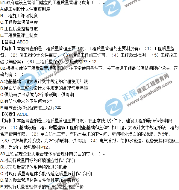 2018年監(jiān)理《建設(shè)工程質(zhì)量、投資、進度控制》試題及答案多選(81-90)