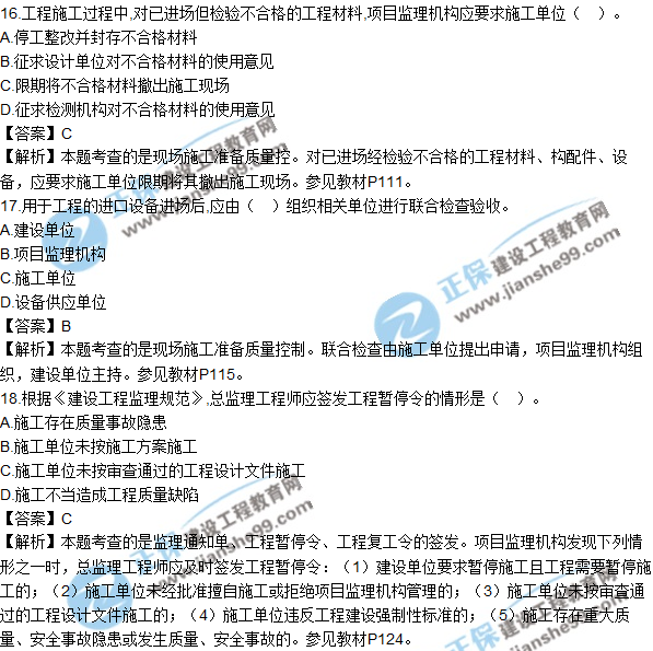2018年監(jiān)理工程師考試于5月19日、20日舉行,考試過后,廣大考生最關心的問題莫過于“2018年監(jiān)理工程師《建設工程質量、投資、進度控制》試題及答案”了,建設工程教育網將會根據(jù)學員反饋,及時匯總2018監(jiān)理試題相關信息分享給大家,并且會及時做出答案解析,希望能為廣大監(jiān)理考生朋友帶來幫助。