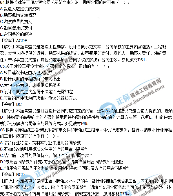 2018年監(jiān)理工程師《合同管理》試題及答案多選(61-70)