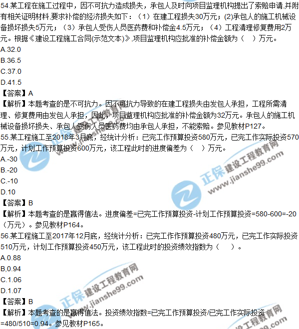 2018年監(jiān)理《建設(shè)工程質(zhì)量、投資、進度控制》試題及答案單選(51-60)