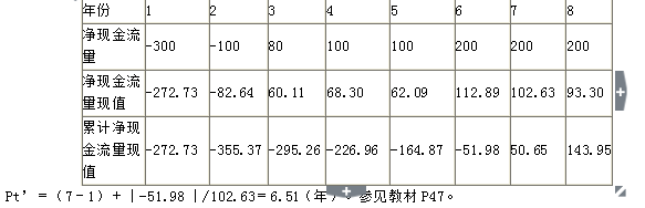 動態(tài)投資回收期(Pt')