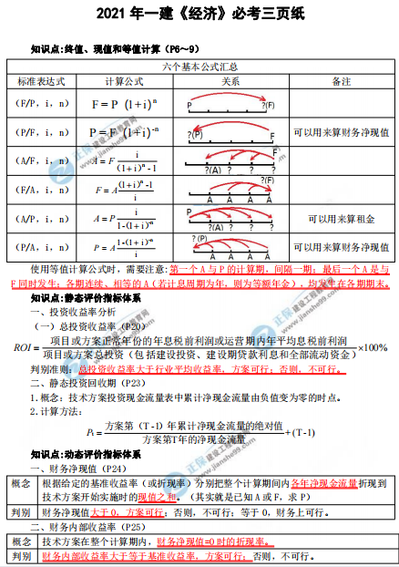 2021年一級(jí)建造師工程經(jīng)濟(jì)考前三頁(yè)紙