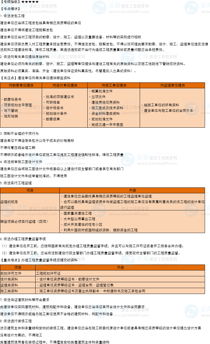 一建工程法規(guī)知識點24:建設(shè)單位的質(zhì)量責任和義務(wù)