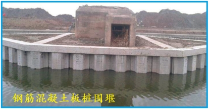 8.鋼筋混凝土板樁圍堰:利用鋼筋混凝土板樁打入到水中土體形成的擋水結(jié)構(gòu),鋼筋混凝土板樁不僅僅是單獨(dú)的板樁式構(gòu)件,而是指由鋼筋混凝土板樁構(gòu)件沉樁后形成的組合樁體,是一種易工廠化,裝配化的圍護(hù)結(jié)構(gòu)。