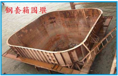 7.鋼板樁圍堰:利用鋼板樁打入到水中形成的擋水結(jié)構(gòu),鋼板樁是帶有鎖口的一種型鋼,其截面有直板形、槽形及Z形等,有各種大小尺寸及聯(lián)鎖形式。