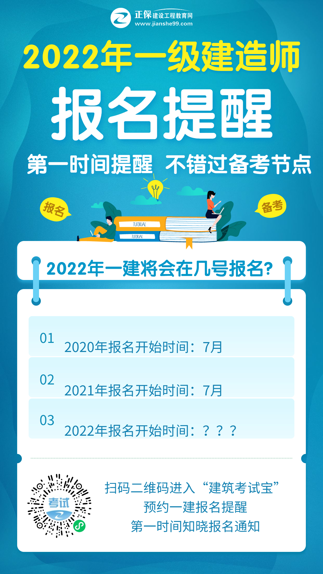 當(dāng)然!2022年一建考試報(bào)名時(shí)間還需要等待官網(wǎng)公布,希望小編整理到的內(nèi)容可以幫助到大家,同學(xué)們也可以在“建筑考試寶”中預(yù)約報(bào)名提醒!