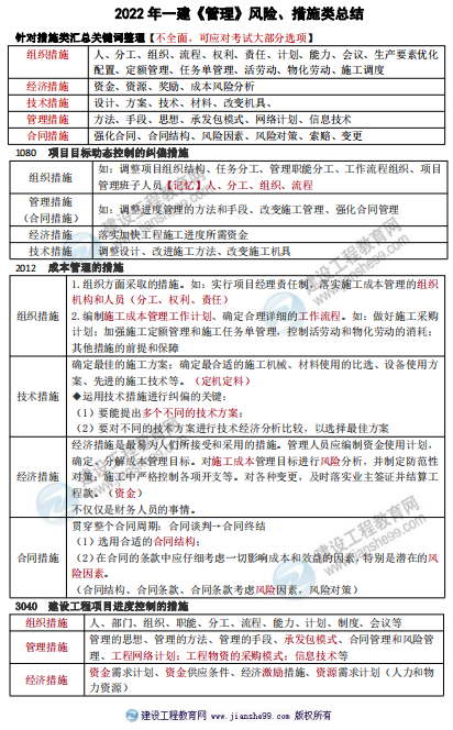 2022年一建《管理》風(fēng)險、措施類總結(jié)