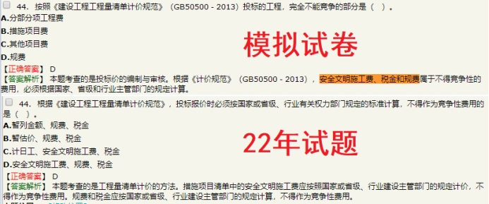 超過85%的知識點,基礎班均講解過;經過基礎班學習,再通過其他班次綜合學習,命中率則可達95%。通過基礎階段的學習,再通過習題班、高頻知識點等強化。以及沖刺串講的鞏固加強。最后再來幾套模擬、預測做做,基本可以涵蓋考試全范圍。如果您備考較晚或沒有時間。也不用擔心,據(jù)統(tǒng)計,2022年網校僅41頁的《沖關寶典》覆蓋的精確考點就達到了80%;最后以知識點形式體現(xiàn)的《考前重點資料》(三頁紙)知識點覆蓋率達到了76%。所以,如果自己學,應對現(xiàn)在的考試會相對吃力很多,但跟著網校的班次走,掌握網校講過的知識點,考試通過真的那都不是事。