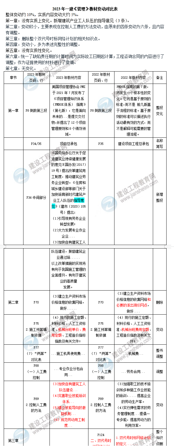 【整體變化10%】2023年一建《項(xiàng)目管理》新舊教材對比