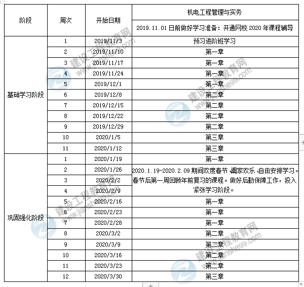 2020年一級建造師考試備考預(yù)習(xí)計劃表-機(jī)電實務(wù)篇