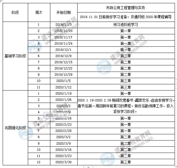 2020年一級建造師考試備考預(yù)習(xí)計劃表-市政實務(wù)篇
