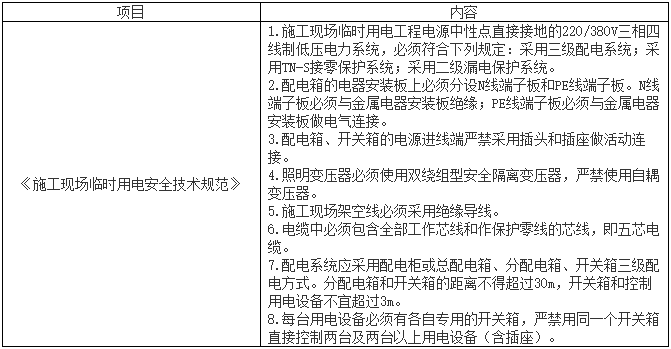 2021年一建建筑工程核心知識點:臨時用電管理